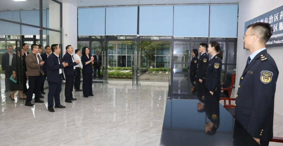 广西壮族自治区药监局党组成员、副局长沈宏睿,南宁市市场监管局、南宁高新区党工委及管委会主要负责人,自治区药监局相关处室和直属单位负责人,市直相关部门负责同志,以及食品药品生产经营企业代表参加揭牌仪式。(马利莉、蓝必贤)